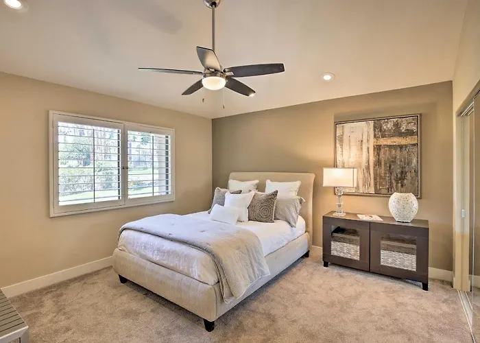 The 116 m² Chic Condo W/ Pool, Balcony - 1 Block To El Paseo! venue comprises 2 bedrooms and can accommodate up to 6 people. Eisenhower Walk of Honor is about 4.2 km away and El Paseo is 0.5 km from the accommodation.